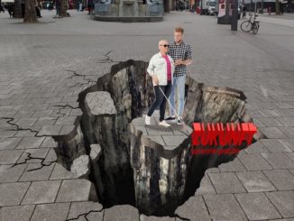 3D-Street-Art als Protest gegen Barrieren. Interaktive Protest-Aktion in Kirchdorf-Süd. Wie fühlt es sich an, von Barrieren behindert zu werden? Eine (bittte weiter lesen)