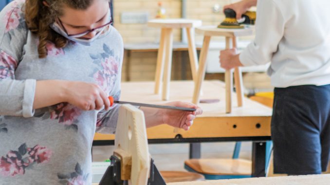 Zusammen mit der gemeinnützigen Organisation „doin‘ good“ und dem Tischlermeister Jasper Seemann arbeiten an dieser Stadtteilschule Schüler aus dem Jahrgang 10 in der Holzwerkstatt an der Werkbank. Dabei stehen der Umgang mit den Werkzeugen, Werkstoffkunde, Berufe rund ums Holz und die Produktion von Alltagsgegenständen auf dem Programm. Im Rahmen der Berufs- und Studienorientierung soll nun versucht werden, den Jugendlichen mit einem weiteren Angebot den Weg in die duale Ausbildung zu ebnen. Fest steht – am Ende gibt es ein Zertifikat, welches natürlich auch eine Empfehlung für eine Ausbildung sein kann.