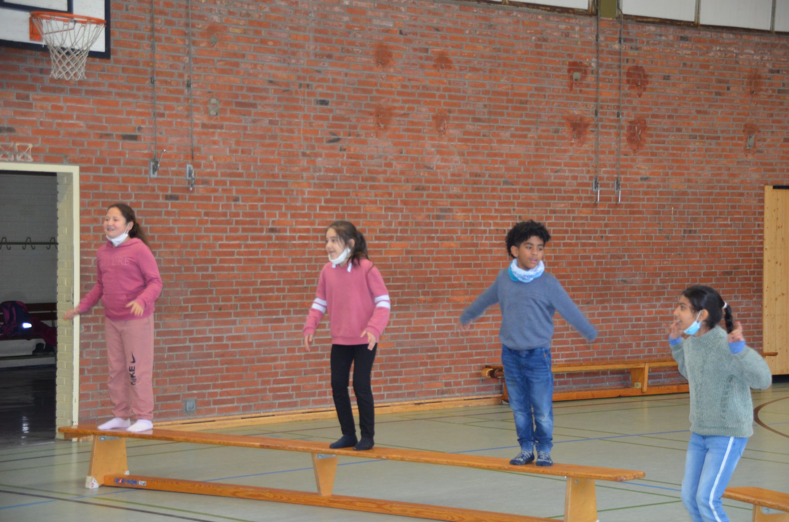 Linda Smailus von der Jugendmusikschule führt mit ihrem mobilen Keyboard diese Stunden durch. Dazu stellt sie in einem sehr großen Halbkreis Turnbänke coronakonform in der Turnhalle auf. So hat sie die Kinder gut im Blick und umgekehrt. „Den eigenen Körper und die Stimme spüren, sich als Klangklasse wahrzunehmen, indem die Kinder zusammen singen, ist unglaublich wichtig“, weiß die studierte Sängerin und Gesangspädagogin Smailus. Nach einem kurzen „warm-up“ singen und tanzen sich die Kinder durch klassische Kinderlieder oder Pop-Songs. Linda Smailus betont: „Wichtig ist mir, dass die Kinder Lust am Singen, Lust an der Bewegung und Spaß an der eigenen Stimme haben.“ Das Konzept geht auf, denn die Kinder lieben „ihre Chorstunde“ bei der sympathischen Gesangspädagogin.