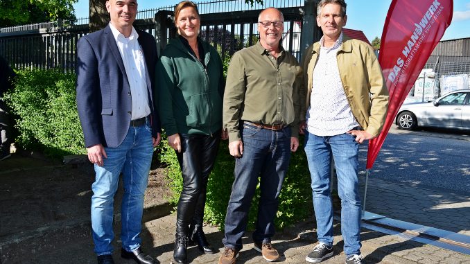 Bezirkshandwerksmeister Peter Henning, sein Stellvertreter Rainer Kalbe, Birgit Winkel aus dem Harburger Büro der Handwerkskammer und Dierk Eisenschmidt von der Handwerkskammer Hamburg begrüßten die Gäste und freuten sich über die rege Beteiligung an diesem Event, der nach der Pandemie nun zum zweiten Mal wieder stattfinden durfte. Mit wenigen, knappen Worten wurden die Gäste von Peter Henning begrüßt, damit diesen möglichst viel Zeit für gute Gespräche und nette Smalltalks bleiben sollte. Vorab aber noch gratulierte der Bezirkshandwerksmeister seinem Stellvertreter, der an diesem sonnenreichen Tag zugleich seinen Geburtstag feiern und zahlreiche Glückwünsche entgegennehmen durfte.