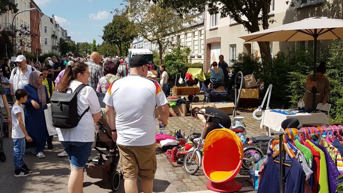 Der Flohmarkt ist ein wichtiger Bestandteil des Heimfelder Stadtteilfestes und erfreut sich größter Beliebtheit Foto: ein