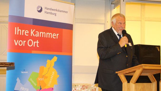 „Handwerk hat nicht nur goldenen Boden, sondern auch einen sicheren Boden“, führte Eisenschmidt weiter aus. Damit das auch weiter so bleibt, richtete er an seine Kollegen die Bitte, verstärkt Praktikums- und Ausbildungsplätze anzubieten. Und an die anwesende Bezirksamtsleiterin Sophie Fredenhagen, die anschließend ein Grußwort sprach, richtete er die Bitte, den aktuell guten Austausch zwischen Handwerk und Verwaltung durch ein noch besseres Miteinander zu ersetzen. Eine kritische Bemerkung konnte sich Eisenschmidt dann nicht verkneifen: Hamburg sei bekanntlich das Tor zur Welt, doch in Hamburg baue man mit Begeisterung Radwege, während andere das All eroberten.