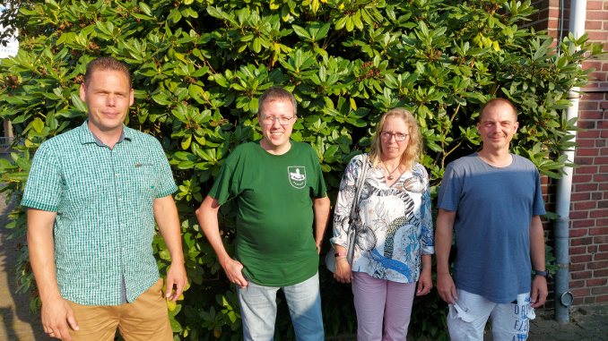 Torsten Fleuren -Nico Breckwoldt Timo Schloo Iris und Jan Doobe (v.l.n.r.) bilden den Vorstand des Schützenvereins Moorburg