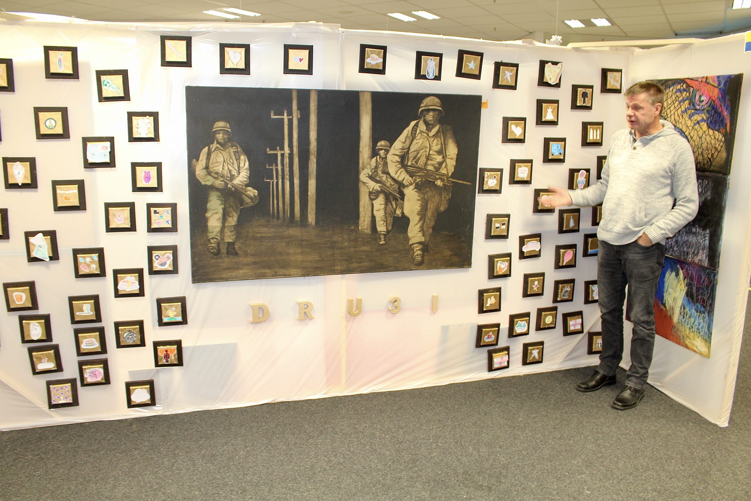 Das Besondere an dieser Ausstellung: Jeder kann im Habibi-Atelier jederzeit mit und ohne Anleitung malen, seine Gedanken, Sorgen und Nöte aufs Papier bringen. Geplant ist auch eine „Kunsttausch“-Aktion. Einige Werke der ausstellenden Künstler können gegen Isomatten, Hygieneartikel u.Ä. getauscht werden, andere Arbeiten stehen zum Verkauf – zum Beispiel von Thomas „Beri“ Behrens, Heike Baltruweit, Thorsten Kirsch oder Heiko „NoMa“ Brey. Nicht zu vergessen die großformatigen Bilder, an denen zahlreiche Personen mitgewirkt haben, die hier regelmäßig oder unregelmäßig malen, um ihren Gedanken Ausdruck zu geben oder ihre unterschiedlichen Ängste durch das Malen artikulieren. Heiko Brey, der sich in der Betreuung der hier aktiven Personengruppen engagiert, sieht es so: „Wir sind ein soziales Projekt, das für alle offen ist, denn jeder kann ein Künstler sein.“