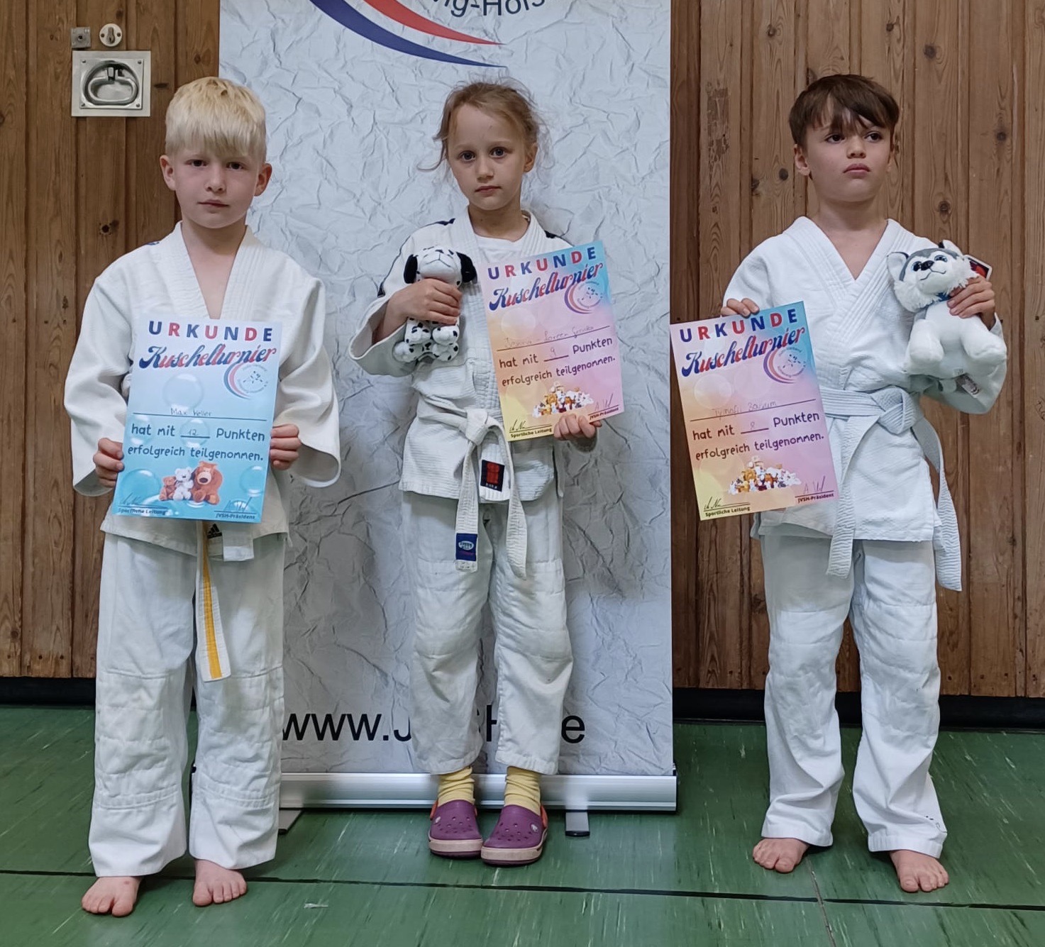 Foto: priv. -Das Foto zeigt Max Jenna Tymofii mit Urkunde und Kuscheltier Foto: priv. -Das Foto zeigt Max Jenna Tymofii mit Urkunde und Kuscheltier