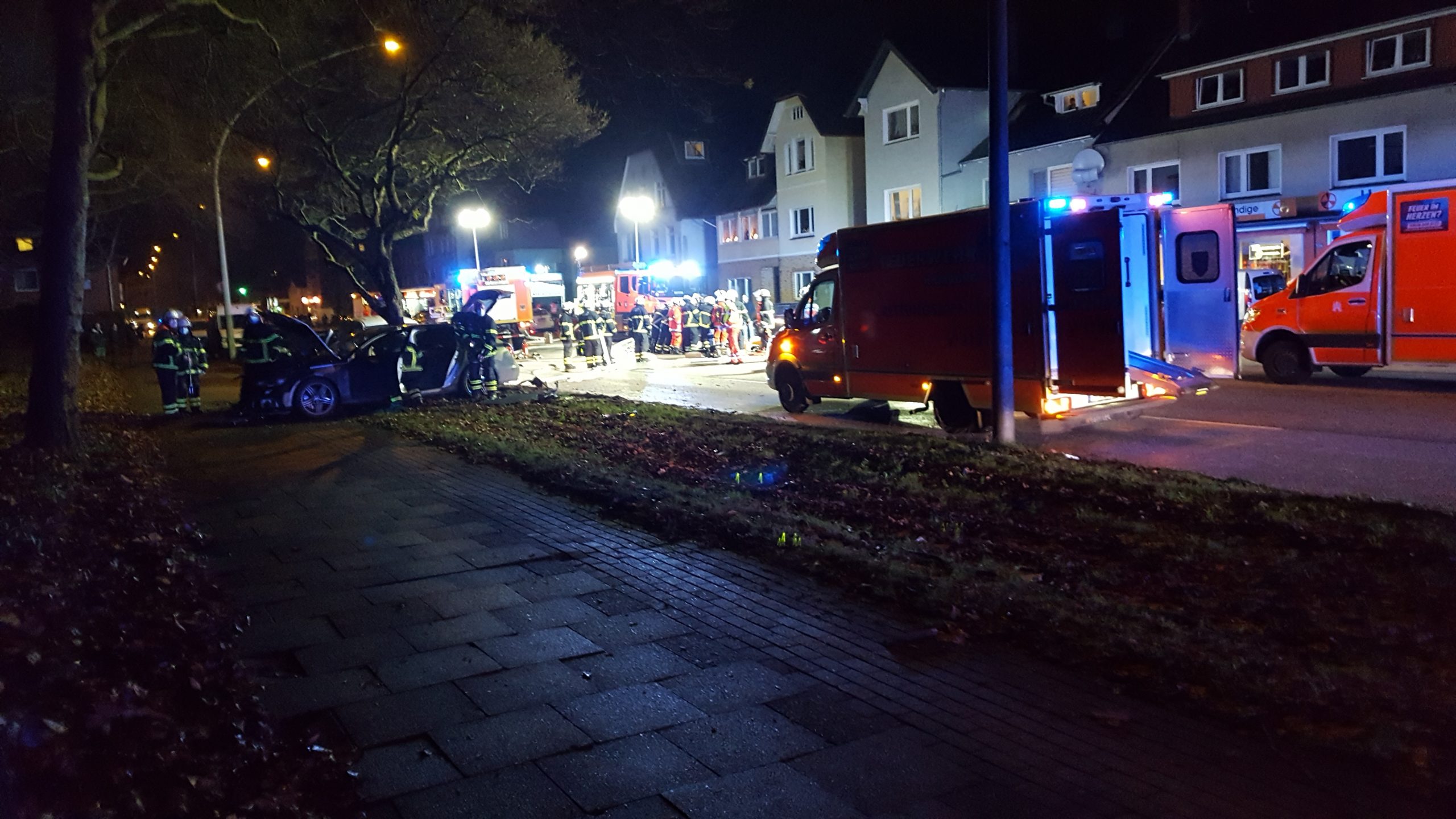 Ursache zwei Pkw auf der Cuxhavener Straße kollidiert waren. In Folge des Verkehrsunfalls wurden zwei Personen in einem Pkw eingeklemmt. Drei weitere Unfallbeteiligte wurden leicht verletzt und ebenfalls rettungsdienstlich sowie notärztlich versorgt. Die Alarmstufe wurde durch den Lagedienstführer in der Rettungsleitstelle auf „Technische Hilfeleistung mit Massenanfall von bis zu fünf