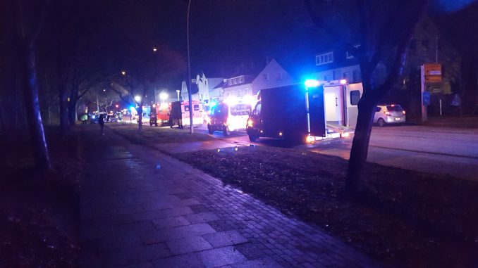 Schwerer Unfall auf der Cuxhavener Straße am frühen Abend des 13. Dezember. Gegen 19 Uhr wurde der Rettungsleitstelle der Feuerwehr Hamburg über den Notruf 112 ein schwerer Verkehrsunfall auf der Cuxhavener Straße in Hausbruch/Fahrtrichtung Neugraben gemeldet. Erste Meldungen hatten lediglich von „mindestens einer eingeklemmten Person“ berichtet, aber beim Eintreffen der Polizei und Rettungskräfte bot sich ein anderes, schlimmeres Bild. In zwei schwer beschädigten Fahreugen, einem Kleinwagen und und einem Kombi, befanden sich insgesamt fünf Leicht- bis Schwerverletzte. Alarmiert unter dem Stichwort „Technische Hilfeleistung mit Menschenleben in Gefahr“ waren die Hamburger Löschgruppe der Feuer- und Rettungswache Süderelbe, die Freiwillige Feuerwehr Hausbruch, ein B-Dienst, ein Gerätewagen-Rüst, zwei Rettungswagen und einem Notarztwagen vor Ort. Die ersten Erkundungen an der Einsatzstelle ergaben, dass aus bisher ungeklärter