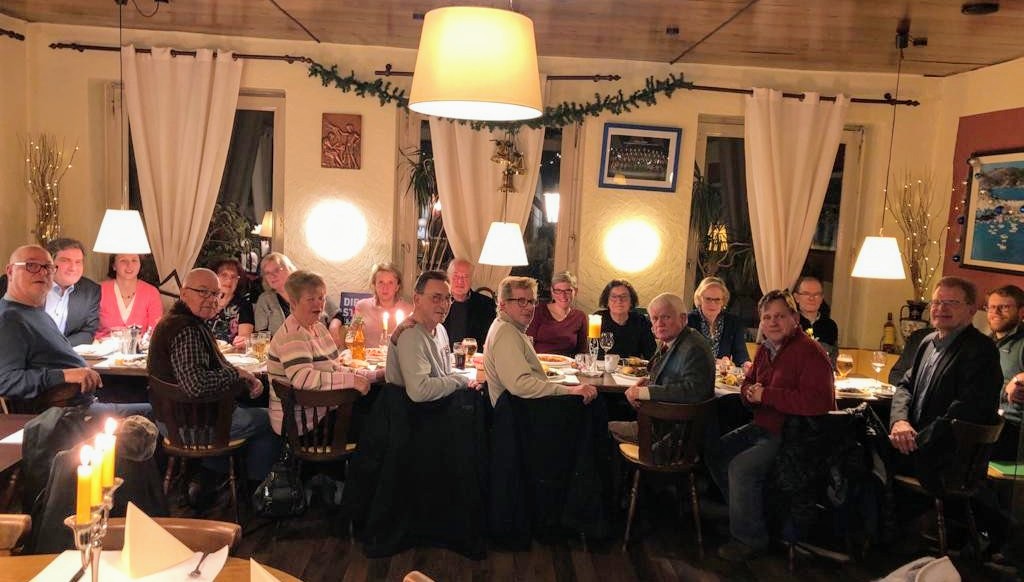 SPD -Fazit der virtuellen Weihnachtsfeier von Mike Dose: „Ja eine gelungene Veranstaltung aber 2021 bitte wieder zusammen in der GaststätteÒ ± wie auf dem Foto von 2019 in der Taverna Olympiade Heimfelder Straße