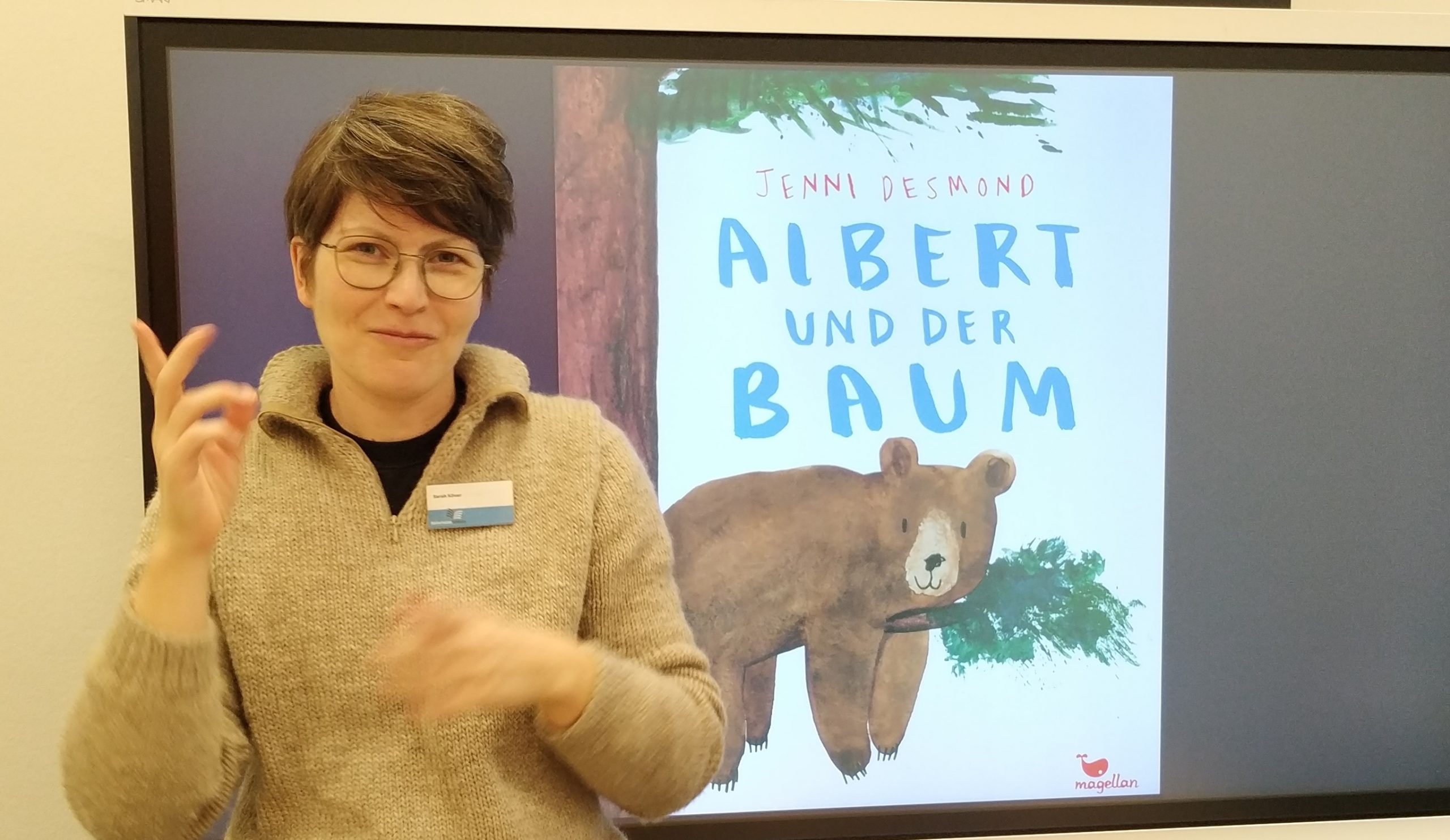 Sarah Köver erzählt in der Deutschen Gebärdensprache Foto: ein Sarah Köver erzählt in der Deutschen Gebärdensprache Foto: ein