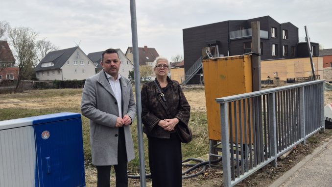 Bezirksamtsleiter Hamburg-Mitte Ralf Neubauer und Ramona Mechau bei der offiziellen Einweihung der Rosa-Kiela-Weiß-Straße in Georgswerder Fotos: au