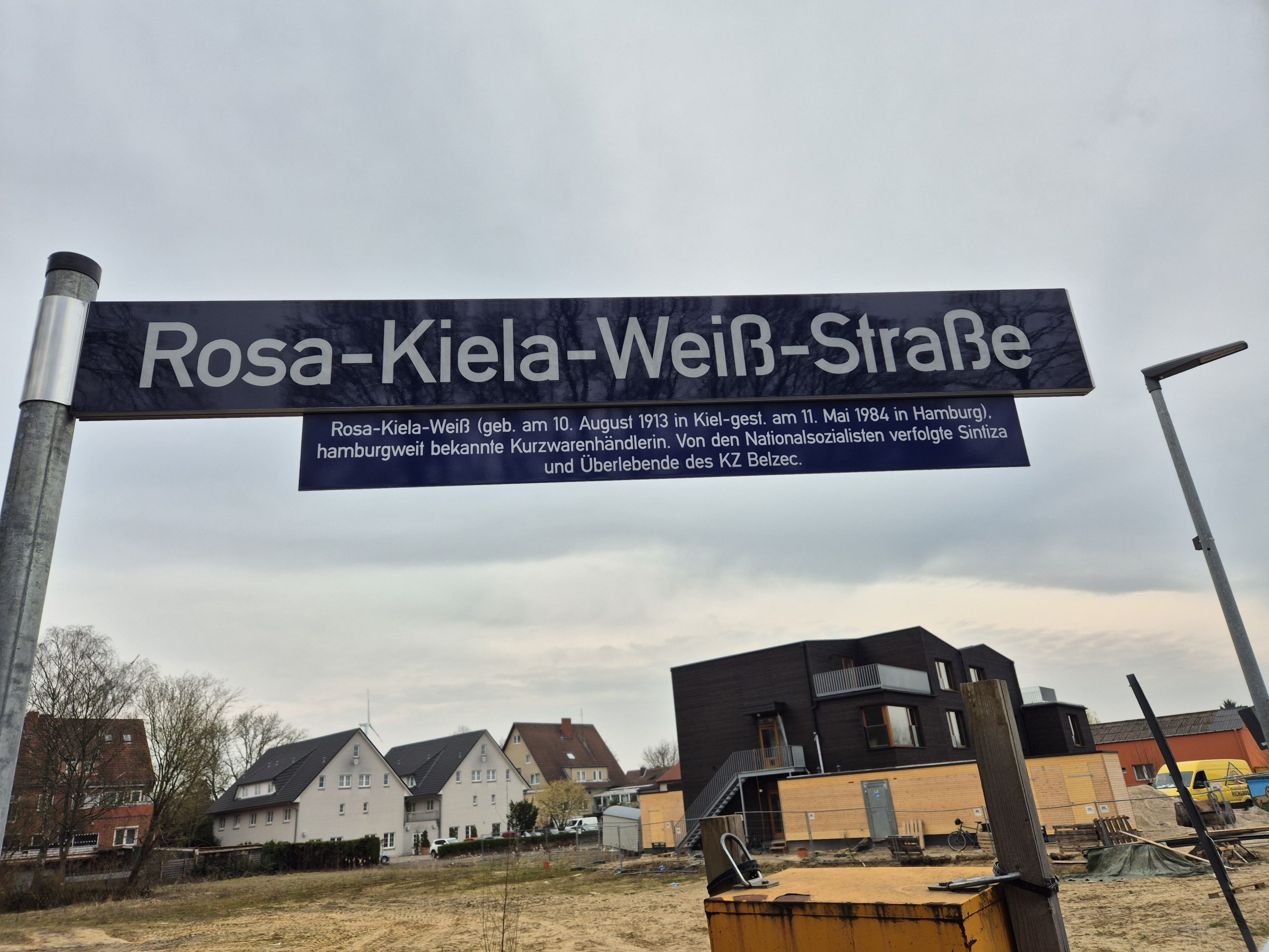 Ramona Mechau hat Tränen in den Augen, als sie von ihrer Mutter Rosa Kiela Weiß erzählt. „Meine Mutter war eine herzensgute Frau“, so die 72-jährige Sintiza. Gemeinsam mit Ralf Neubauer, Bezirksamtsleiter Hamburg-Mitte, und einigen Anwohnern steht sie am vergangenen Dienstagmorgen in der Rahmwerder Straße auf Höhe des Neubaugebiets Kirchenwiese. Der Grund: Aus der bisherigen „Planstraße A“, einem rund 135 Meter langen Weg zwischen der Rahmwerder Straße und Langenhövel, wird die „Rosa-Kiela-Weiß-Straße“, Neubauer und Mechau weihen diese gemeinsam ein. „Die Verfolgung der Sinti und Roma im Nationalsozialismus war lange Zeit nur wenig im öffentlichen Bewusstsein präsent. Dabei ist die Sinti-Gemeinde in Hamburg tief verwurzelt. Mit der Rosa-Kiela-Weiß-Straße geben wir dieser Geschichte einen festen Platz. Wir erinnern an das Schicksal von Rosa Kiela Weiß und würdigen ihren Mut und ihr unermüdliches soziales Engagement“, erklärt Ralf Neubauer.