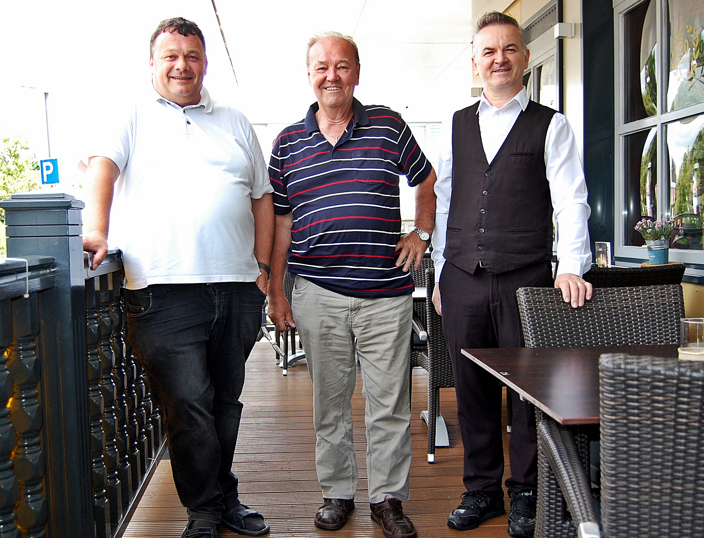 gd -Gemeinsam wollen Pastor Stefan Langer Claus-Werner Jonas (Katholische Anglergruppe) und der Restaurantinhaber Jonny Zefic den Bedürftigen einen schönen Tag gestalten